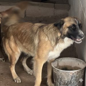 Mestizo color arena y pecho blanco , hembra alegre y dinámica.