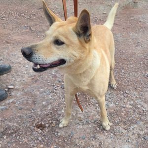 Mestizo de color beige, macho , de buen carácter , sociable , juguetón y cariñoso. Le gusta salir a dar largos paseos.