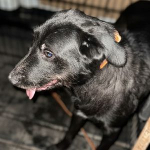 Mestizo color negro , tamaño mediano ,de buen carácter sociable con animales y personas.