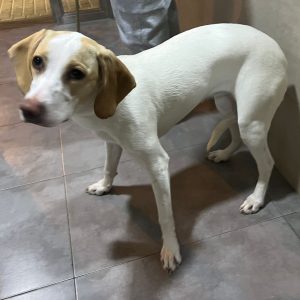 Perrita de raza American Hunter, color blanco, perrita muy cariñosa y muy sociable, cachorrito de unos 6 meses.