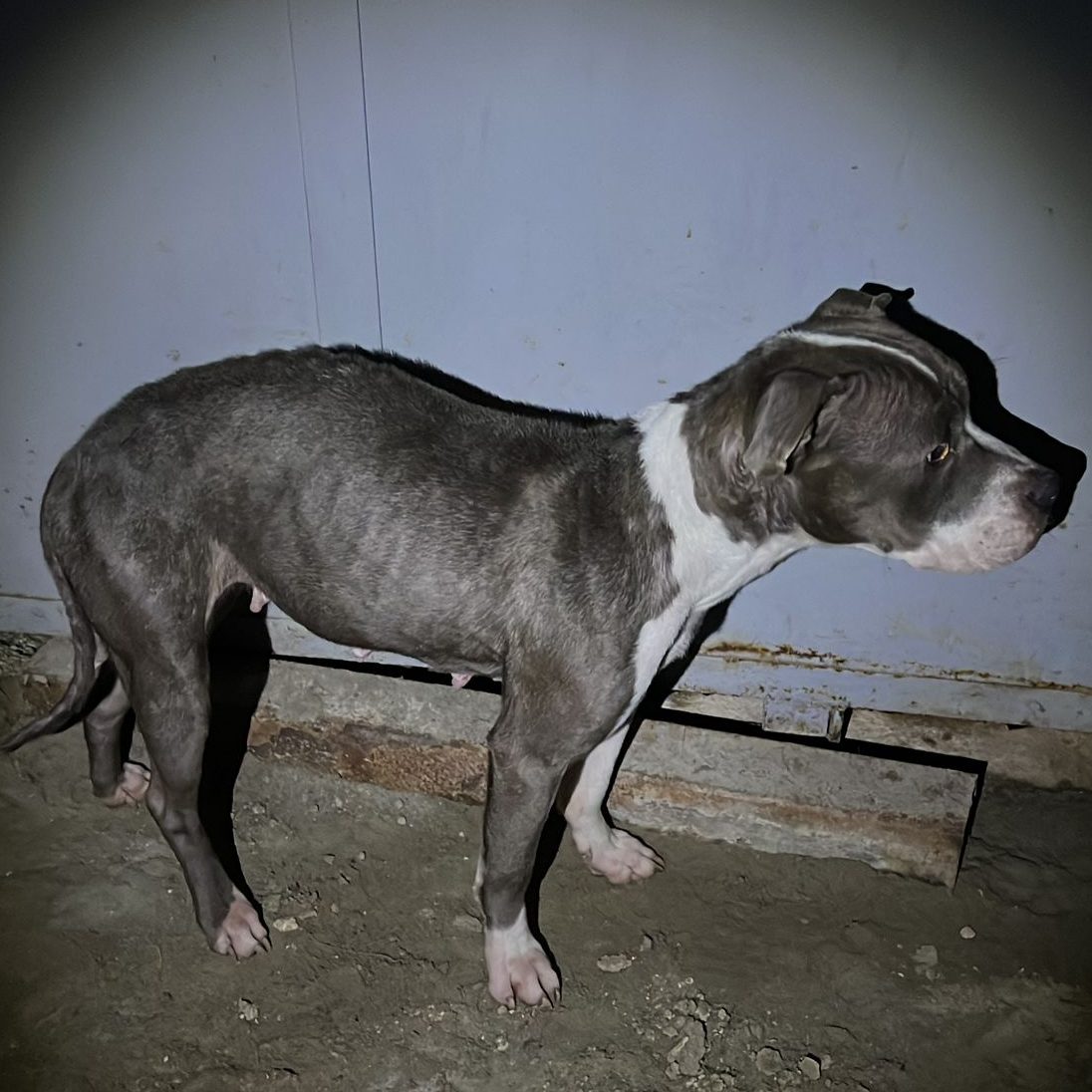 Pitbull color gris , macho de buen carácter ,con energía alta ,le gusta mucho jugar, muy dócil, sociable con personas y otros animales ,con ganas de tener un hogar.